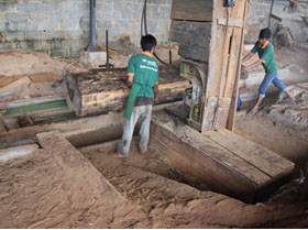 在保證原材料源頭大規(guī)模儲備穩(wěn)定的情況下,沐年為確保材料的材質(zhì)在最佳品質(zhì)為前提,在云南瑞麗、盈江設(shè)立半成品(粗加工)儲備基地 。其中瑞麗基地占地面積約:20畝,盈江基地占地面積約:15畝,粗加工基地擁專業(yè)柚木技術(shù)人才和專業(yè)的緬甸木工師傅,共約80多人,其中伴隨沐年近20載風雨的優(yōu)秀師傅占70%,緬甸華僑占40%;基地目前全部采用國際先進的加工設(shè)備,其中設(shè)備配置共計達50-60臺,大部分是來自歐美、臺灣進口機械(木工設(shè)備),僅大型智能化干燥窯就達到15個,每個干燥窯能容納30立方柚木,先進的干燥技術(shù)在確保坯料品質(zhì)和市場供需的前提下,坯料的加工和處理必須達到一定的規(guī)模和數(shù)量;半成品基地僅曬場面積共計約:7000多平方米,因柚木必須要有充分的日曬雨淋的過程才會展現(xiàn)出最美麗的品質(zhì),而在云南的氣候是最適宜柚木的初加工處理;半成品基地的主要職能是:把關(guān)粗加工坯料質(zhì)量,充分氧化和光合作用、干燥含水率控制,把握坯料的精準、平整度,最后選擇達標的半成品入庫儲備。